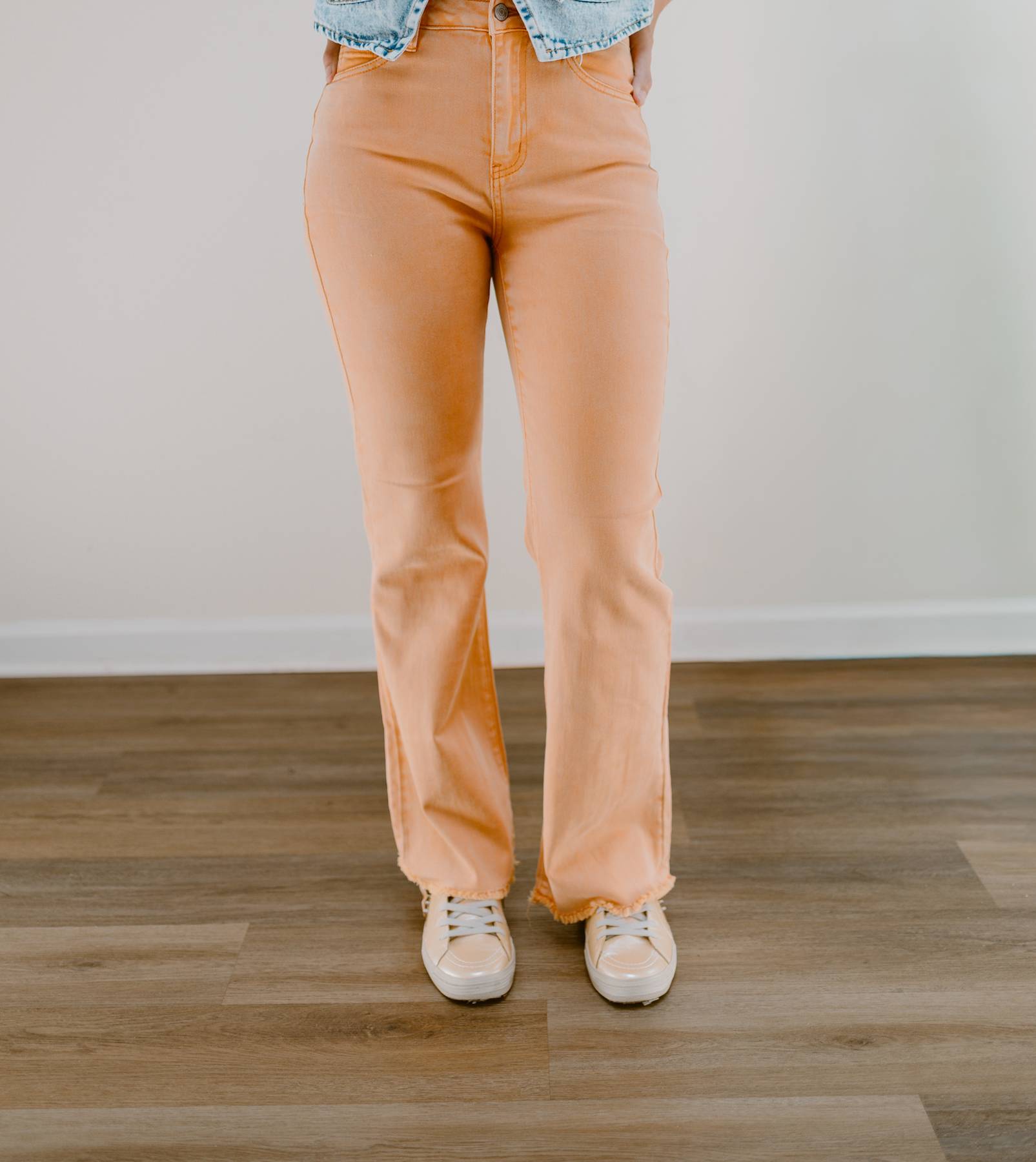 Make a bold statement in the Neyland Wide Leg Denim, where comfort meets game day glam. These washed orange jeans bring just the right amount of stretch, softness, and standout style to your fall wardrobe. With a flattering high waist, wide leg silhouette, and raw-edge hem, they’re the perfect combo of retro cool and modern comfort.