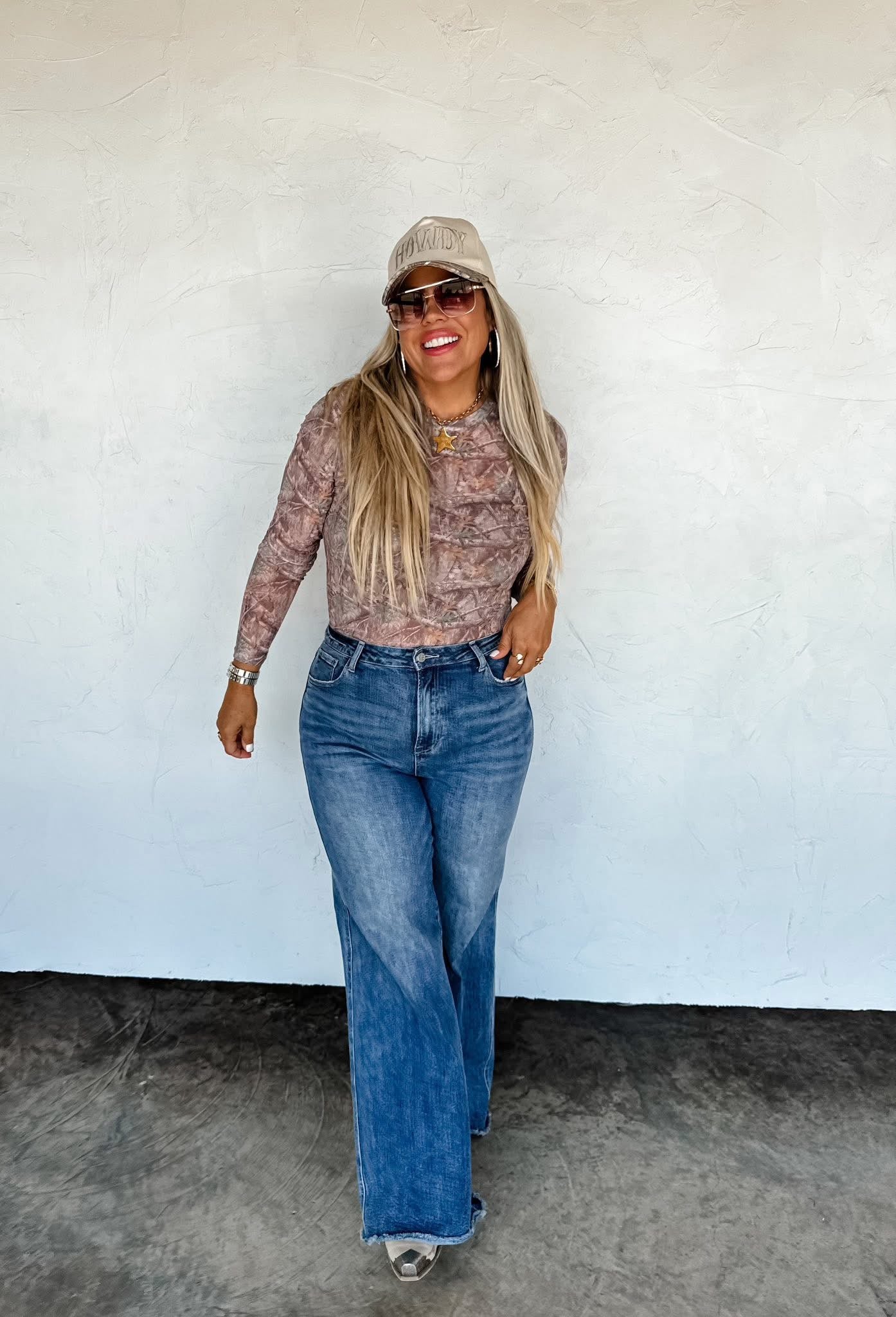 For the woman who loves a touch of edge mixed with effortless everyday wear, the Wild Terrain Mesh Top brings it all. Designed in a soft, lightweight mesh with a natural camo-inspired print, this top offers the perfect blend of modern texture and timeless southern flair. It’s fitted, flattering, and ideal for layering across seasons — think denim jackets in fall, shackets in winter, and cutoffs in spring.