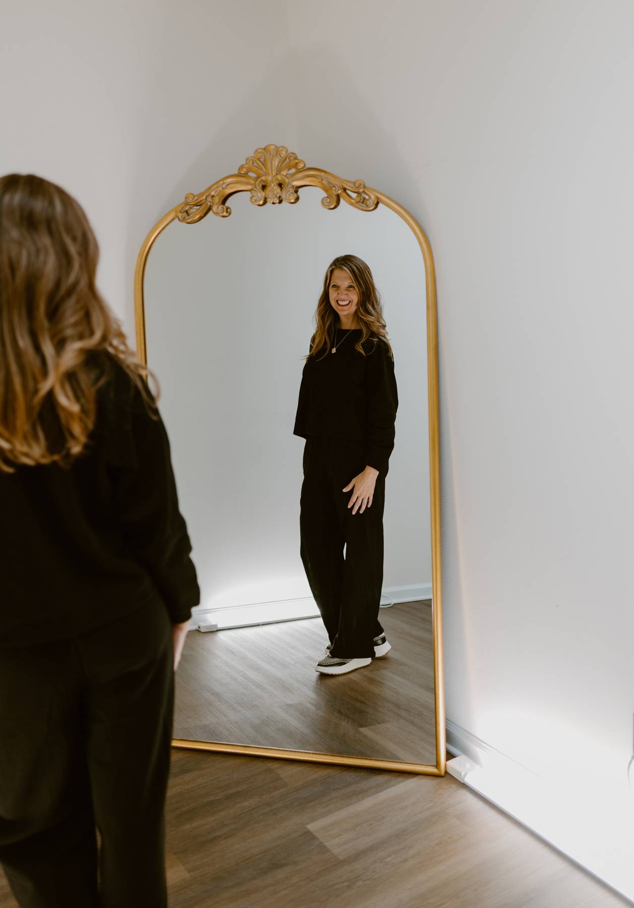 For fall, add a plaid scarf and casual boots for that cozy-chic look. In winter, layer under a structured coat for sleek styling. Mix the sweatshirt with faux leather leggings for a night out or pair the pants with a graphic tee for a laid-back vibe. The timeless black makes it endlessly versatile and perfect for every season.