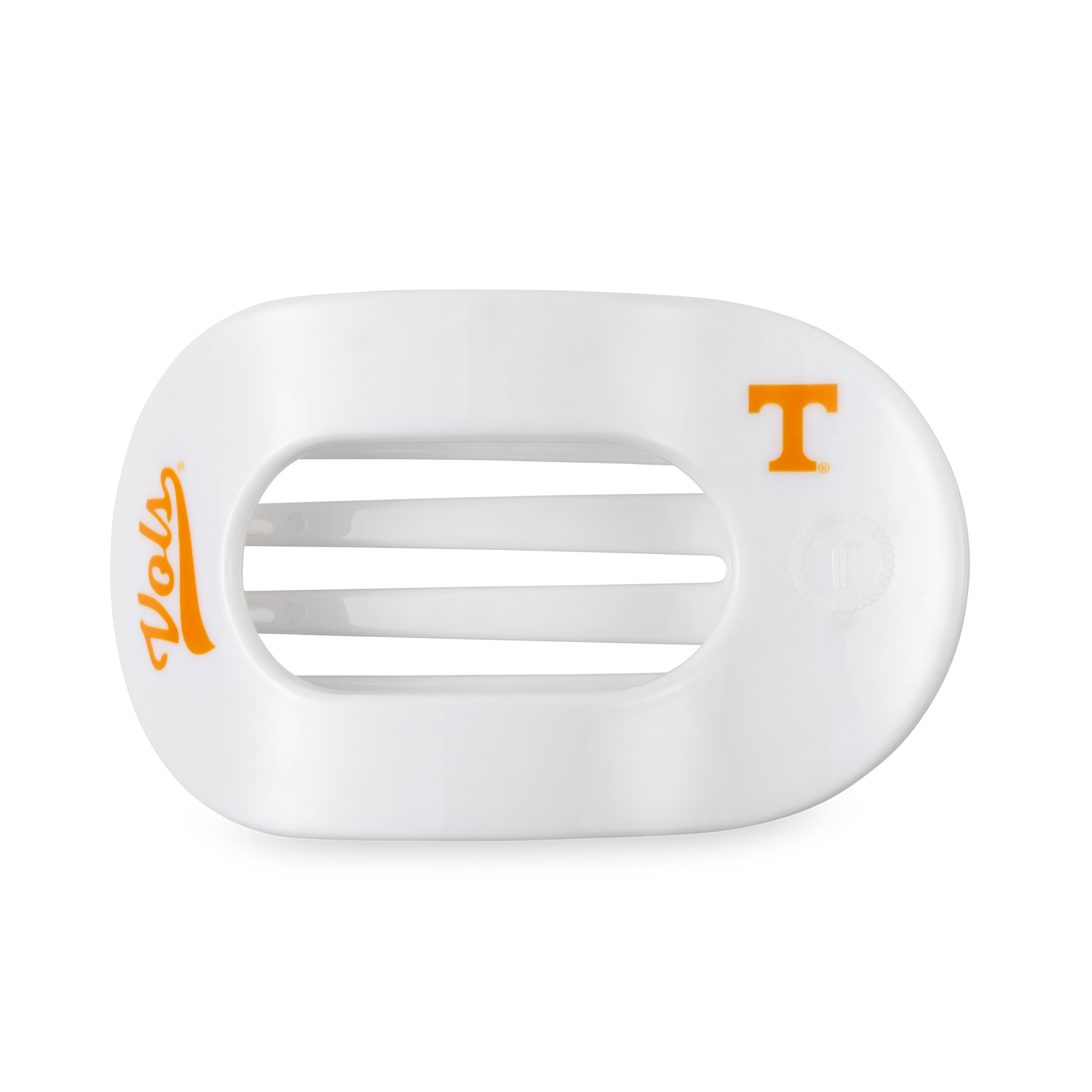 Lay flat and relax with the new TELETIES University of Tennessee, Go Vols! Large Flat Round Hair Clip in White and Orange. This hair clip is designed to allow you to lay back flat, do yoga, or sit comfortably in a seat with a headrest, and it is made with the same material that is nearly unbreakable. Shop your favorite University of Tennessee hair accessories now! Go Vols!