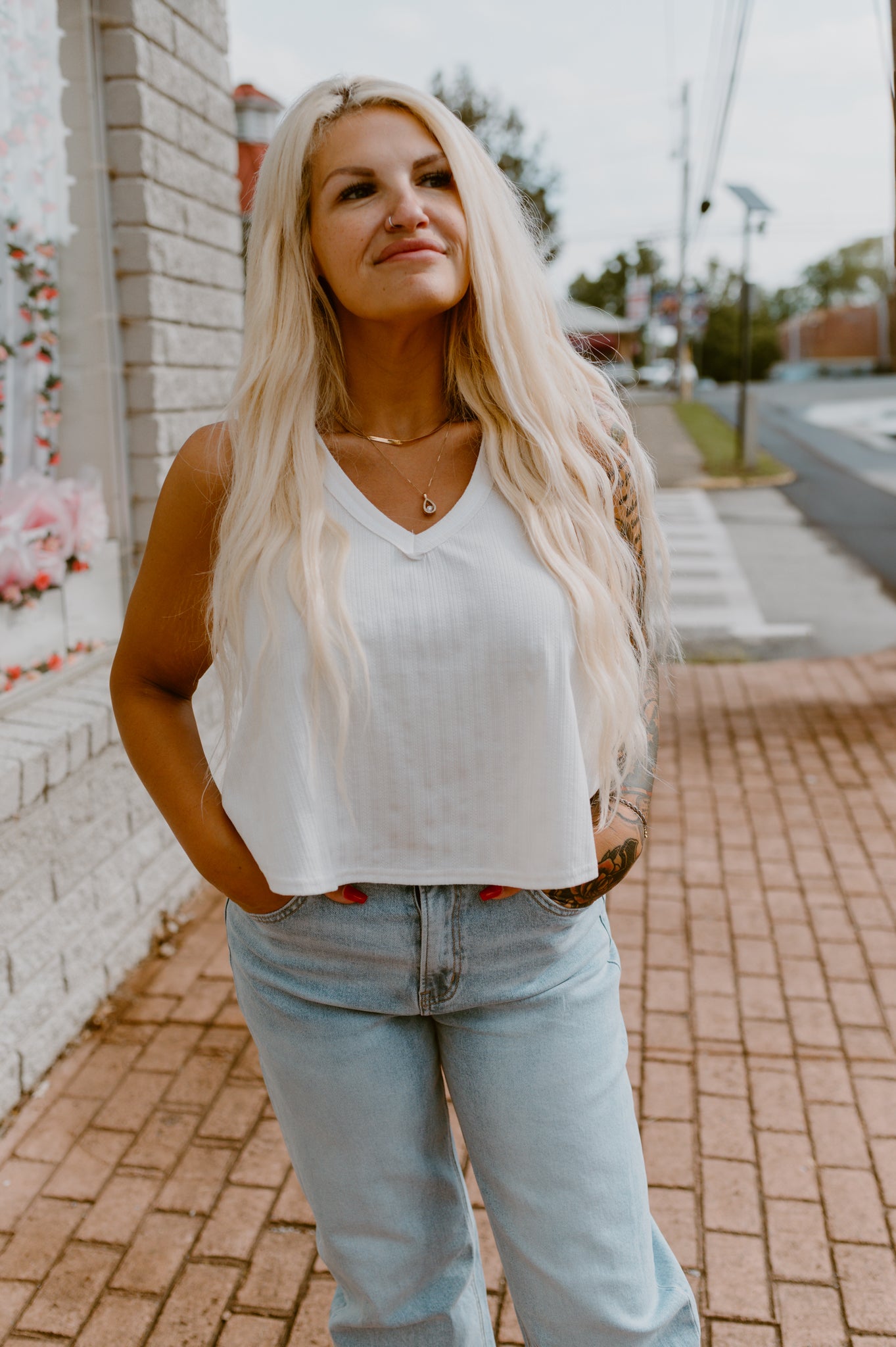 A wardrobe essential that never goes out of style. Our Classic White V-Neck Tank is the perfect foundation piece for any outfit: