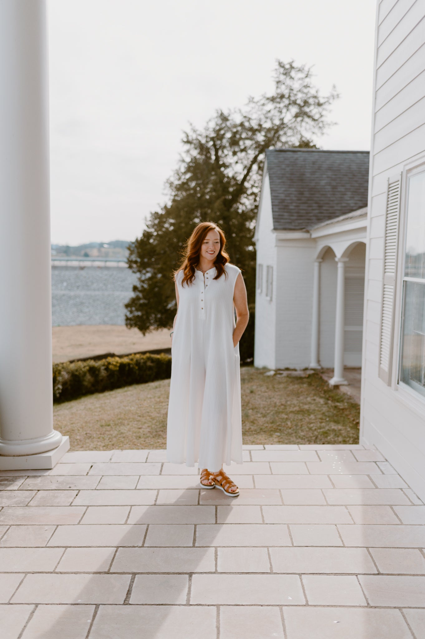 - Design: Sleeveless silhouette with a relaxed fit and wide-leg styling