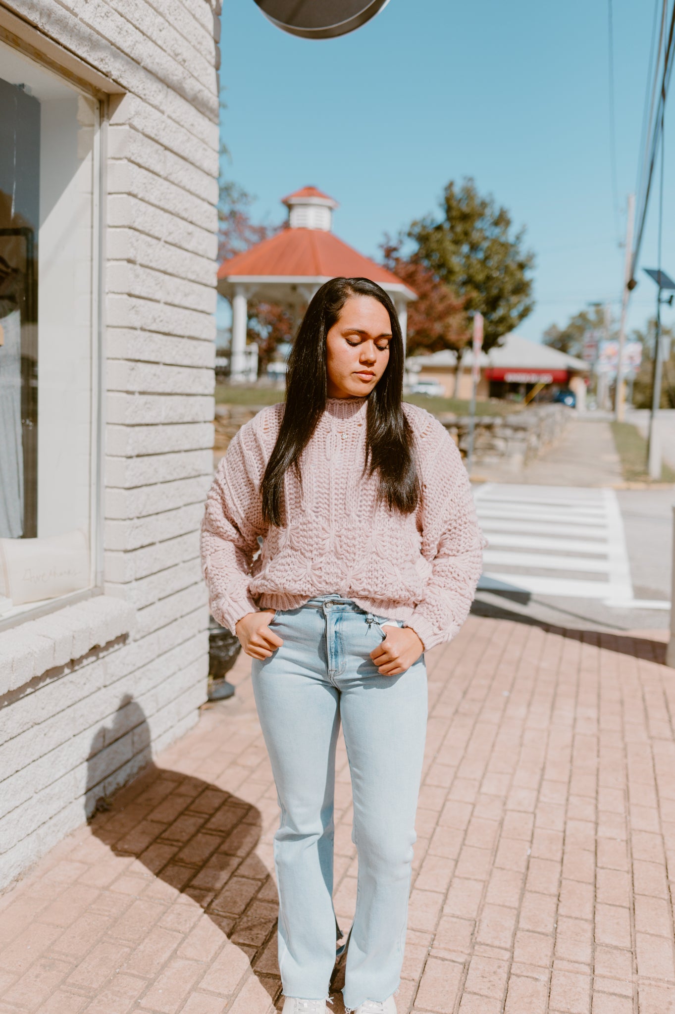 The Frankie Cable Knit Cropped Sweater | Lilac