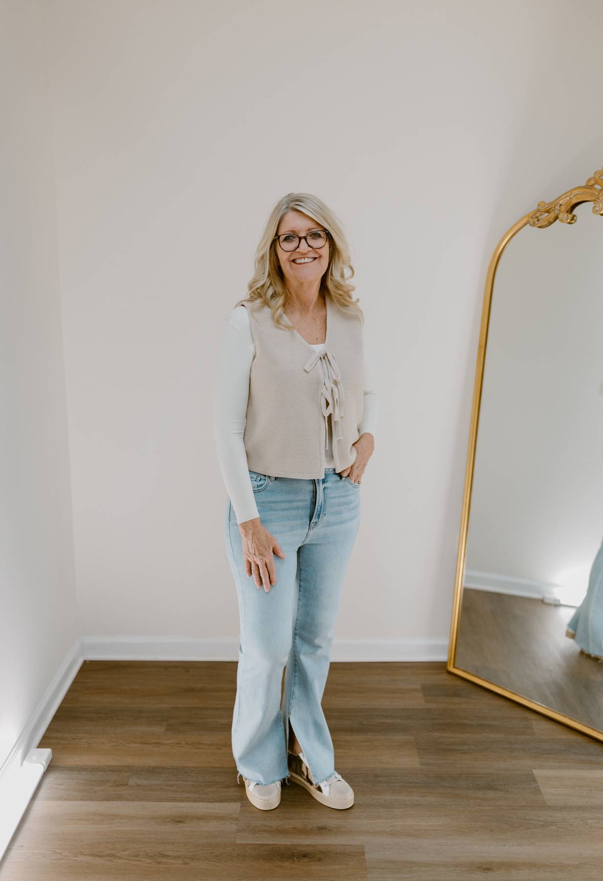 Meet your new layering hero — the Timeless Tie-Front Knit Vest. Effortlessly chic yet endlessly versatile, this neutral knit adds just the right touch of texture to any outfit. With its soft knit construction and feminine tie-front detail, it brings both polish and ease to your everyday looks. Designed in a modern cropped silhouette, this vest transitions seamlessly from casual denim days to elevated layered outfits.