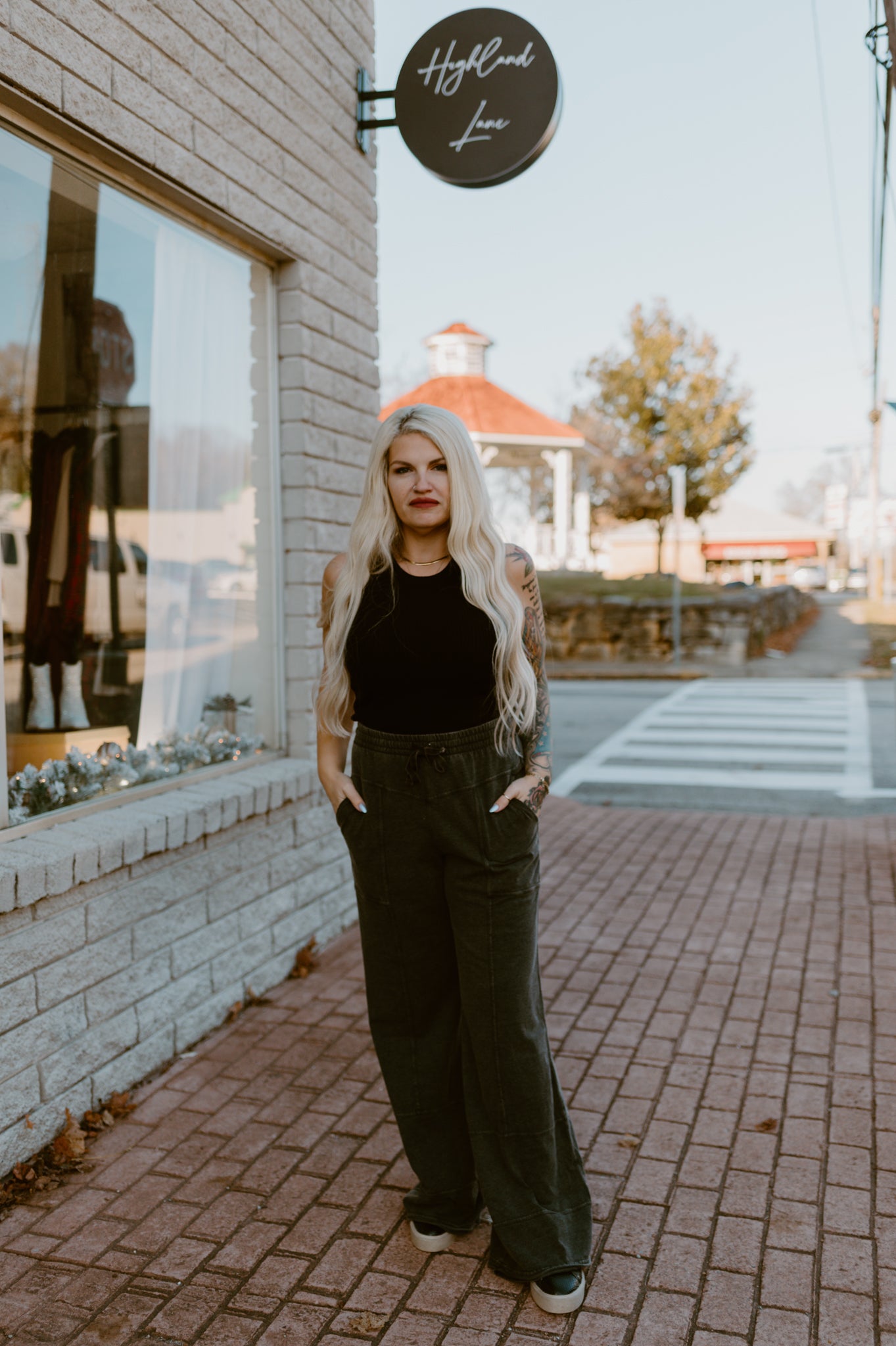 These versatile pants strike the perfect balance between comfort and style. The structured seaming adds a tailored touch while maintaining the ease of your favorite sweats. Deep pockets offer practical storage, while the wide-leg cut creates a lengthening effect that pairs perfectly with both sneakers and boots.